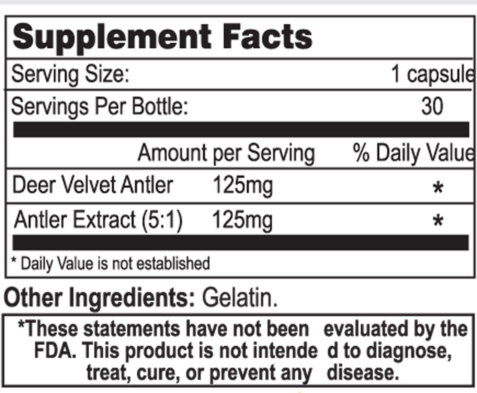 Комбинация — 5 : 1 (125 мг) экстракта рогов и порошка бархатных рогов оленя (125 мг)
