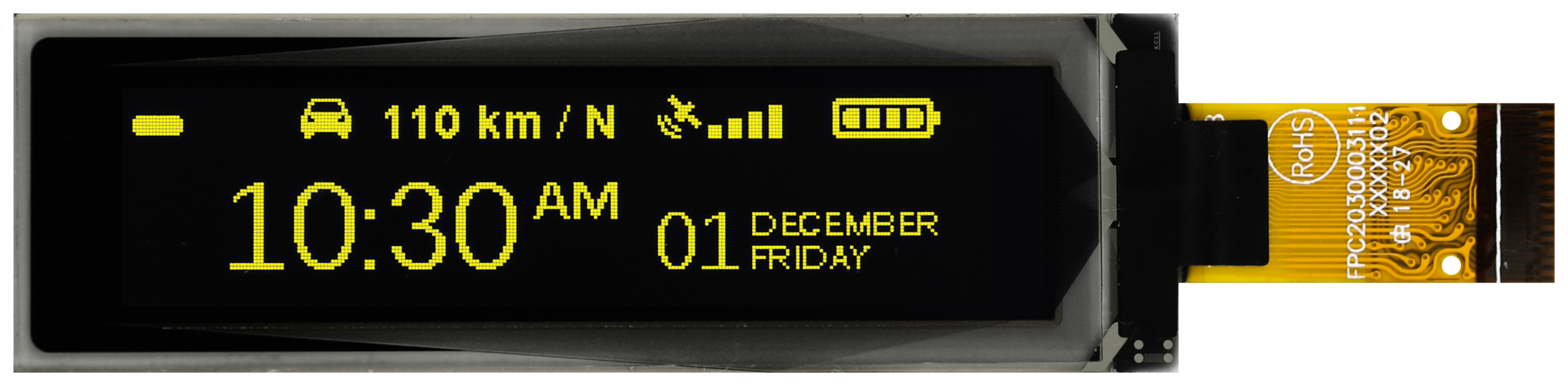 Дисплей Midas OLED, пассивная матрица, желтый, 256 x 64 пикселей, COT, I2C, параллельный, интерфейс SPI