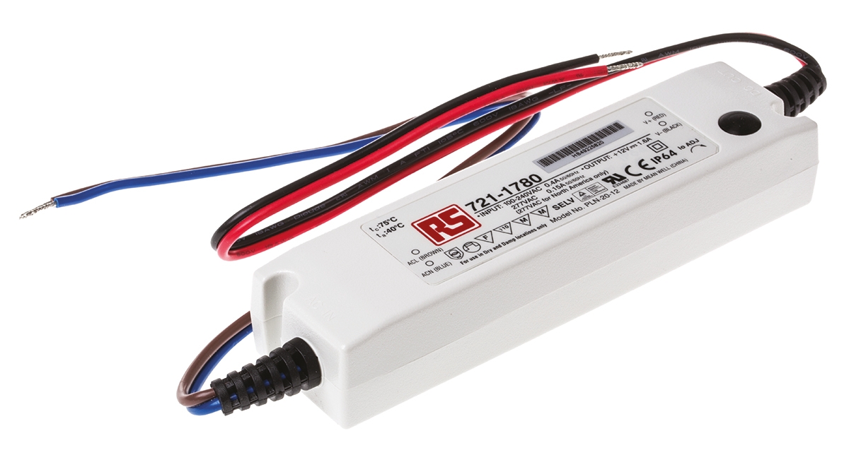 Driver LED Mean Well, 19.2W, IN 127 → 392 V dc, 90 → 277 V ac, OUT 12V, 1.6A