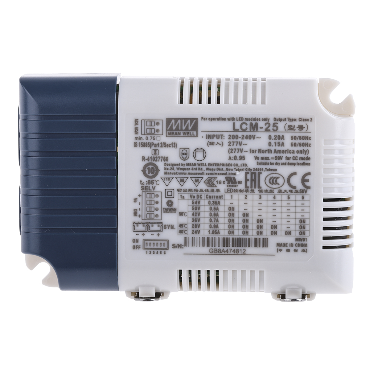 Светодиодный драйвер Mean Well, 25 Вт, вход 180 → 277 В переменного тока, 254 → 392 В постоянного тока, выход 6 → 54 В, 1,05 А, 350 мА, 500 мА,