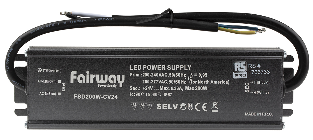 Светодиодный драйвер RS PRO, 200 Вт, ВХОД 200 → 277 В переменного тока, ВЫХОД 24 В, 8,33 А