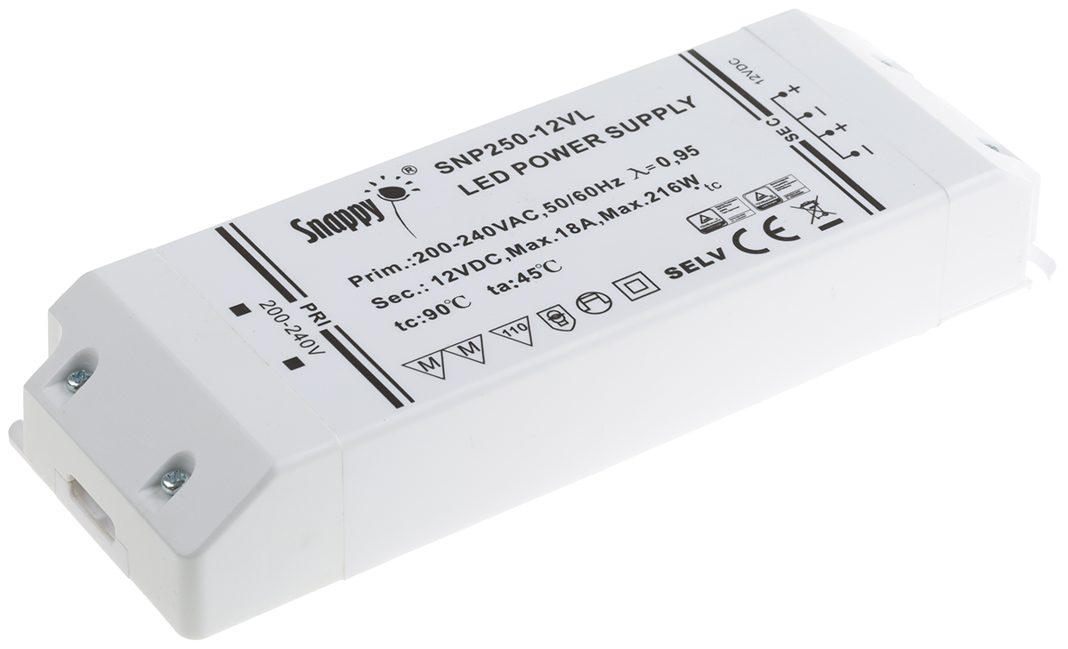 Светодиодный драйвер RS PRO, 216 Вт, вход 200 → 240 В переменного тока, выход 12 В, 18 А