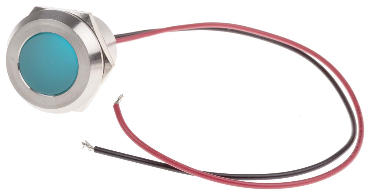 RS PRO Синий светодиодный панельный индикатор, 12 В постоянного тока, IP67, утопленный, вырез 22 мм
