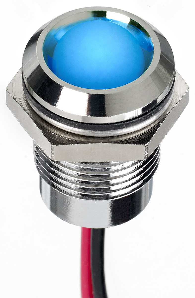 RS PRO Синий светодиодный панельный индикатор, 24 В постоянного тока, IP67, приподнятый, вырез 14 мм