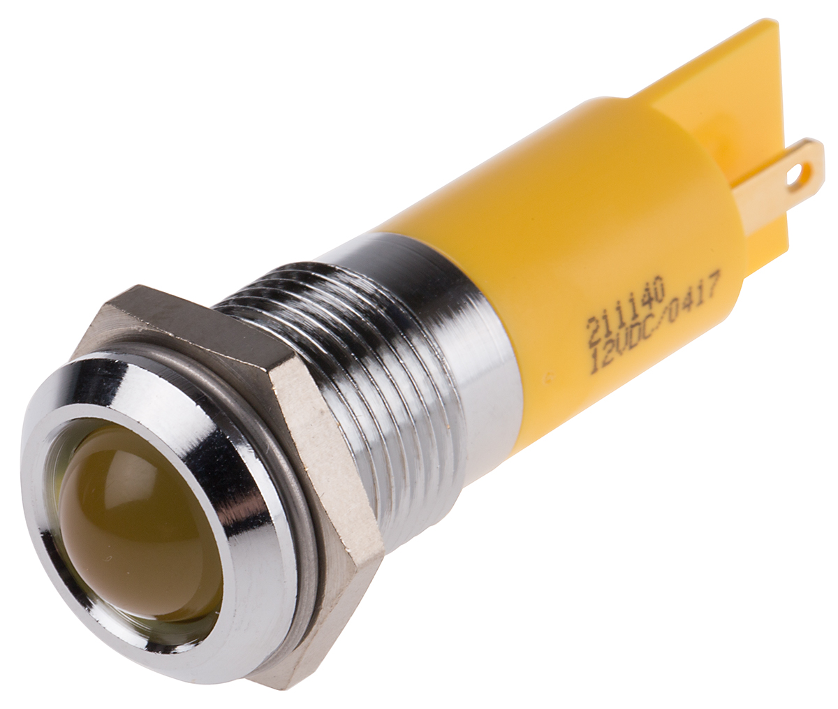 RS PRO Желтый светодиодный индикатор панели, 12 В постоянного тока, приподнятый, вырез 14 мм