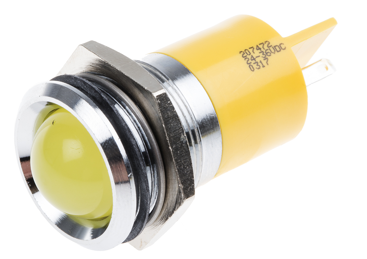 RS PRO Желтый светодиодный панельный индикатор, 24 → 36 В постоянного тока, приподнятый, вырез 22 мм