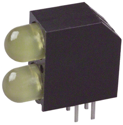 Желтый светодиодный индикатор Dialight PCB, 50°, 2 светодиода, угловой, 1,9 В, монтаж в сквозное отверстие