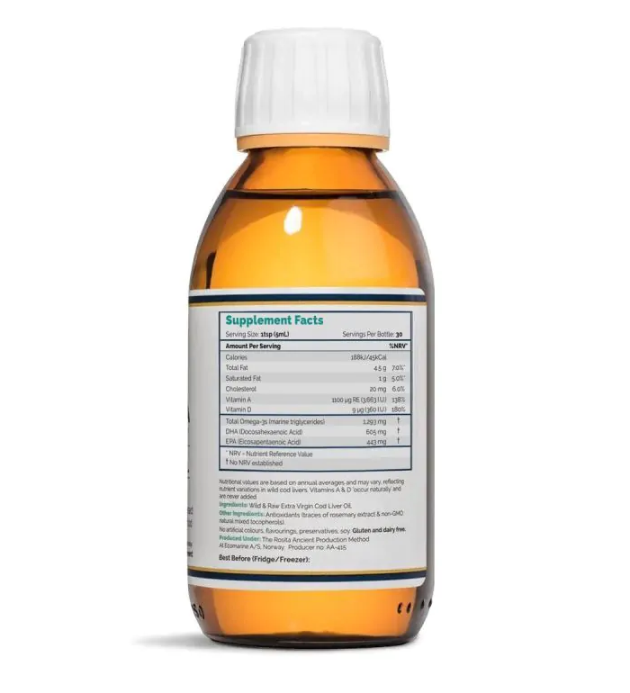 Масло печени трески Rosita Extra Virgin — единственное в мире свежее, выловленное в дикой природе и сырое масло печени трески. Прямо из нетронутых норвежских морей оно содержит природные витамины А и D, а также полный спектр жирных кислот омега, включая омега-3 ЭПК и ДГК.